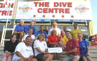 Pictured: PADI Course Director Nom and Managing Director Clive Martin presenting WSBA Turtle Watch with cheque.