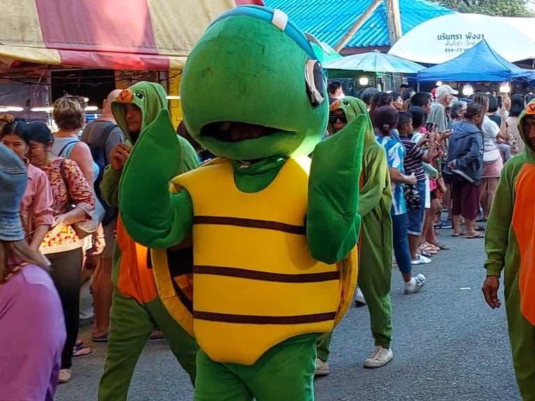 After the Turtle Releasing Ceremony, the festivities continue with live music performances and a bustling night market.