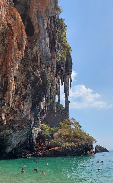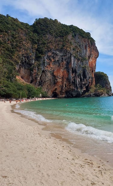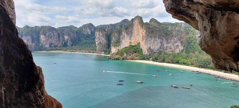 Railay, often spelled as "Railay" or "Rayleigh," is a stunning peninsula located in Krabi, known for its captivating natural beauty and adventure opportunities. Railay is easily accessible for a day trip from Ao Nang or Krabi however, we would recommend staying here for a night or two to fully explore all the area has to offer. There's a much quieter vibe in the evenings once the day-trippers have departed.