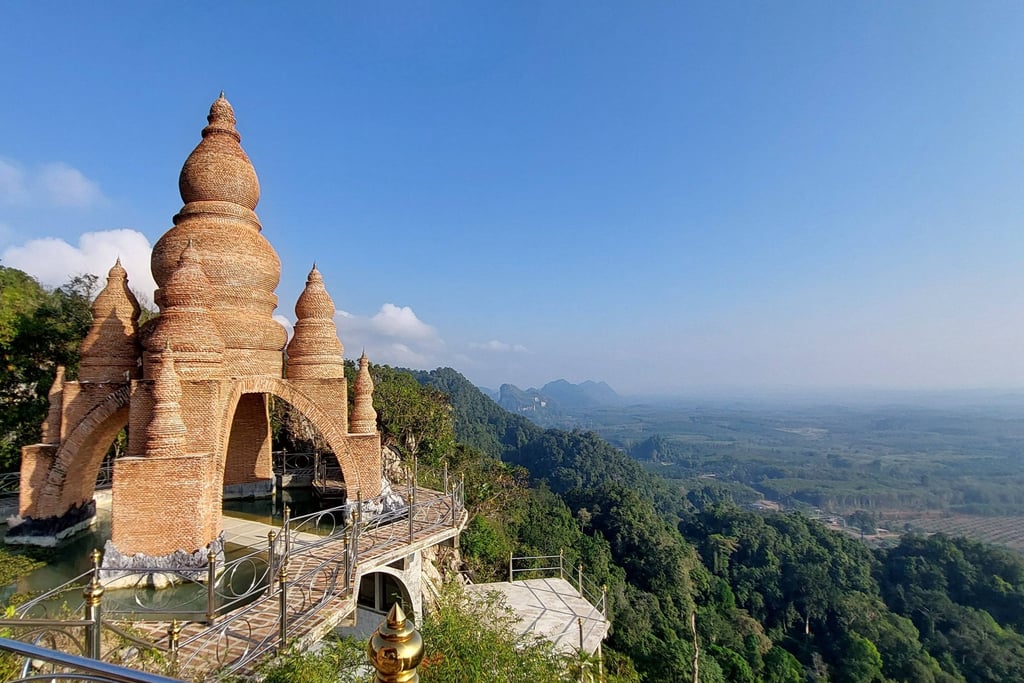 Overlooking palm and rubber plantations on limestone mountains, this temple started its construction in 1997 to commemorate the ancient-Srivijaya roots that laid the foundation for the Surat Thani region. As maritime trade and commerce in that era helped spread Buddhism throughout Asia, stupas were originally built to safeguard Buddhist remains and relics.